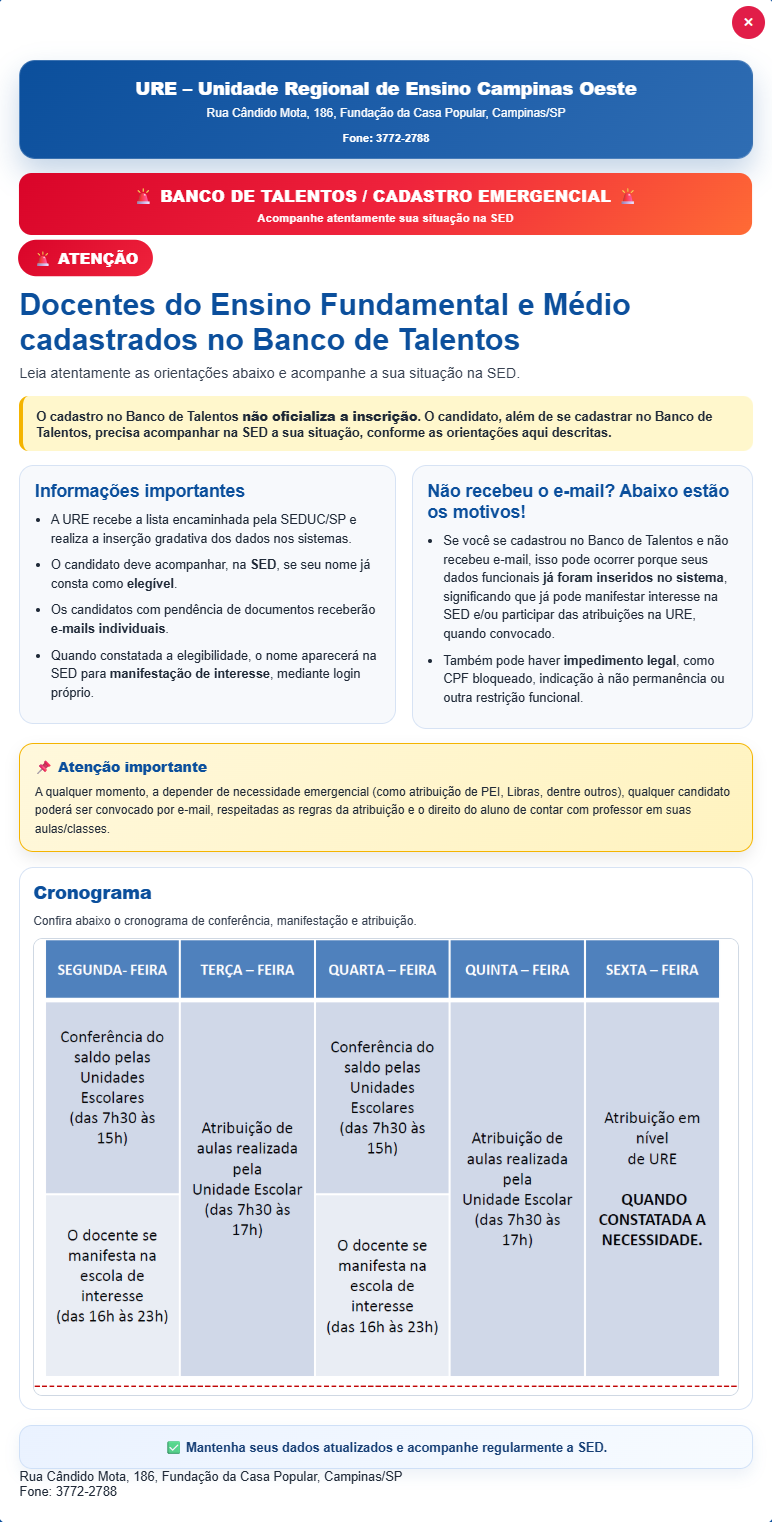 Unidade Regional de Ensino – Região de Campinas Oeste